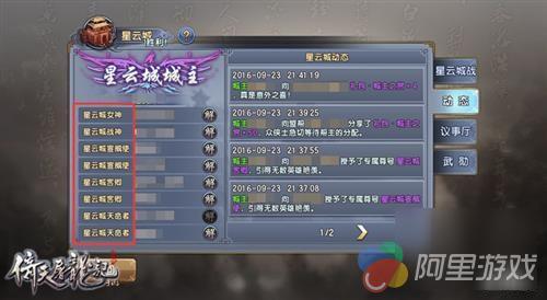 金戈铁马,烽烟即将再起,全新地图【星云城】拉开帮派城战大幕。全服帮派通过竞拍获取星云城争夺战参战资格,首周出价最高两个帮派在每周固定城战时间进行战斗决出一个城主,之后每周取出价最高的一名挑战城主,获胜一方将会获得星云城一周的占领权限,获胜帮派以及盟帮所有成员将会获得专属称号、海量福利。在这里要提一下的是,城战时,攻守双方可以与其他帮派结盟,其中防守方可邀请一个盟帮助战,攻击方最多可邀请两个盟帮助战。从现在起赶快培养兄弟帮派还不算太晚哦!