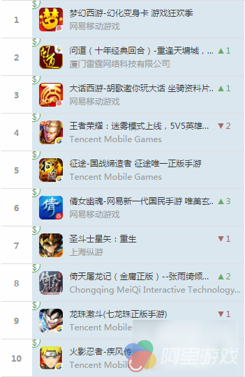 今天国内iOS畅销榜的Top10 又发生小幅波动,前三常客《问道》今日回归Top3,今日排名第二。
