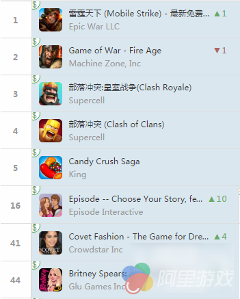 而在Top 50 中,可以注意到的一个现象是,有三款女性向休闲类游戏的表现十分突出,分别是排在16位的文字类互动剧情向游戏《Episode》,排在41位的换装养成类游戏《Cover Fashion》和排在44位的角色扮演类换装游戏《Britney Spears: American Dream》