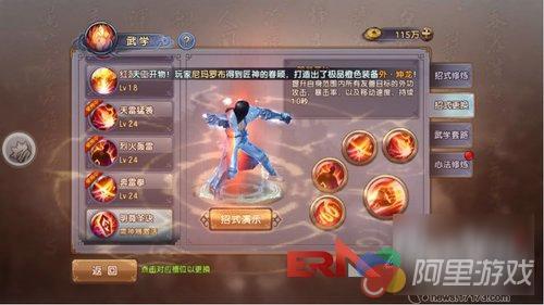 这套武学中除去风雷震落可以在游戏初期就解锁外,剩余三个技能都需要神器来解锁。核心主要是释放风雷震落技能(烈火轰雷、奔雷拳亦可),这些技能都能增加风雷BUFF,每一层BUFF都会使天雷猛袭的威力获得惊人的成长。