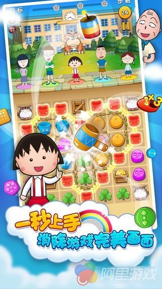 游戏是一款连线消除的益智类手游,游戏画面延续了动画中清新可爱的风格,操作简单易上手,适合各个年龄段的玩家,游戏中小丸子和同学们俏皮可爱的百变形象更是吸引了众多女性玩家的关注。