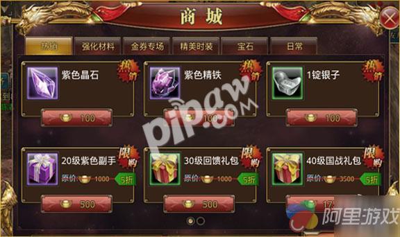 目前手游中开放了有商会,可以从商会购买以及卖出一些不重要的物品,不过购买次数是有限制的。另外还有寄售模式,这个在手游中也是很常见的,物品标价挂在寄售上卖出寄售系统中包含了游戏中的大部分道具,武器、防具、首饰、坐骑装备、装备强化、坐骑、杂货、金券和银子,其中银子需要金子购买,其余物品都能使用银子购买。寄售系统只能寄售不绑定的道具,不能寄售绑定道具,购买也需要金子或者银子,不能使用绑银、金券。