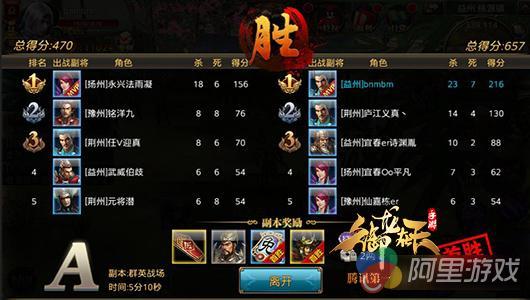 在“群英战绩”的排行榜上,会展示上周在“群英战场”中平均积分前50名的将军。上周在群英战场中战斗超过10场,平均得分排名在50名之前的玩家都会在每周一刷新之后登录排行榜。上榜的玩家不仅是全服玩家膜拜一周的对象,还能通过排行榜收获丰厚的奖励和排行榜专属紫色副将——关羽,首胜奖励可以在当场结算中获得,可谓面子和银子双丰收。