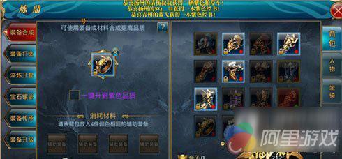 在装备合成中有两种途径,一种是同品级装备合成,从背包中选出4件颜色相同的装备作为损耗材料来提升颜色品质。目前装备材料的主要产出就属虎牢关副本了。除此之外可以通过消耗紫色晶石来一键升紫。紫色水晶在签到礼包、国战礼包、7天乐礼包、金子商城等渠道中均可获得。