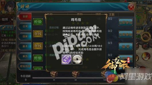 御龙在天手游中有很多的日常任务,日常任务可以带来经验奖励和道具奖励,是每个玩家每天都要做的任务。鸡毛信任务同样也是玩家们不得不去做的任务之一,不但能够带来不菲的经验的奖励还有各种的道具奖励,下面呢小编就给大家介绍下鸡毛信任务怎么做。