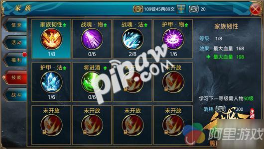 御龙在天手游家族技能是只有玩家加入家族后,才能学习的特殊技能。目前为止家族技能只有六种,这六种的技能增加的属性各有不同。家族韧性提升最大血量,战魂·物提升物理攻击力,战魂·法提升法术攻击力,护甲·物提升物理防御力,护甲·法提升法术防御力,第六个技能将进酒可以提升家族群英会的喝酒经验。玩家们可以根据自己的职业来选择技能的学习