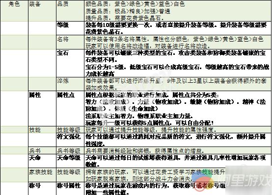 从上图不难看出:提升战力的方式主要是两大途径,角色和坐骑,但提升战力的方式远不止图中所表述的内容,现将游戏内能带来战力提升的内容描述如下: