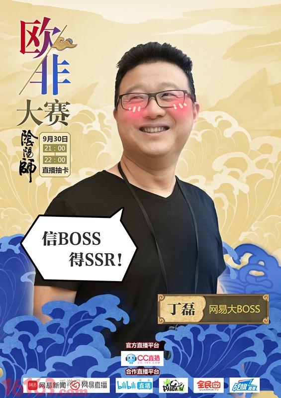 在血统第一的《阴阳师》手游中,BOSS上场策划无神招,到底是技术大咖丁老板被押切等人吊打?还是玩家代表折戟对决?30日晚9点,网易CC、网易直播、Bilibili直播、熊猫TV、全民TV、战旗TV六大平台同步直播,等你围观!