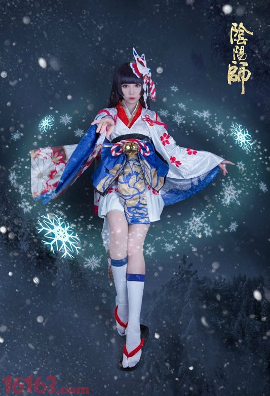 “走路摇ZLY”作品,冷艳的雪女大人,身着月见之樱华服,下一秒就准备召唤冻结一切的洪荒之雪,用冰晶来接招吧!