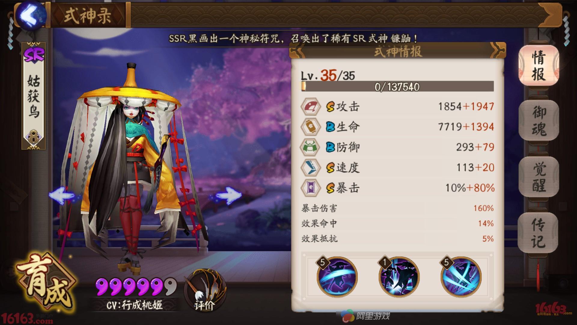 座敷,由于招财猫一直不稳定,所以迫于压力带上座敷,可以保证鬼火不断,座敷的速度也尽量快就好,我的座敷速度只有134,在鸟之前。