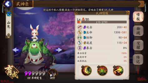 其次食发鬼山兔座敷无多少要求,座敷最好技能满,不然缺火,回火慢也会容易翻车,两只山兔觉醒就行 鸟的速度有些人的鸟是龟速,应该也没有大的影响,就是输出稍微会慢些,因为鸟大+神乐疾风+鸟大抢伤害这种套路,在求稳拿成就时用的不多。疾风优先留给食发鬼会好点,当然想加速过图也可以自行斟酌啦。