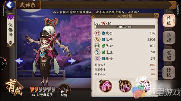 傀儡师时小编最早抽到的单体伤害,但是风头很快被三尾盖过了,毕竟三尾觉醒容易。在抽到茨木之后,小编就彻底遗弃了她。直到后来的鬼王狩猎,才让小编重新将她拾起,带针女的傀儡师让狩猎变得异常轻松,丰厚的奖励也让小编准时开狩猎。可以说,傀儡师在狩猎中获得的收益,已经远远超过培养她所投入的成本了。对于那些不知道如何打狩猎的小伙伴,不妨看看自己的库存里是否有傀儡师,有一套不错的针女,后面的,就不需要多说了吧~