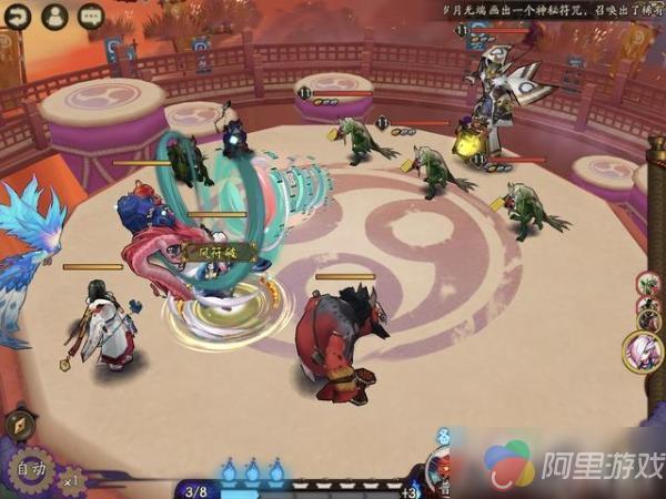 一目连可以打出蕴含风之力的符咒,对一名敌人造成伤害,造成伤害时吸收目标一定比率的攻击,持续若干回合。作为风神,这能的效果看起来很帅,一圈龙卷风卷了过去。有种霸气侧漏的感觉。