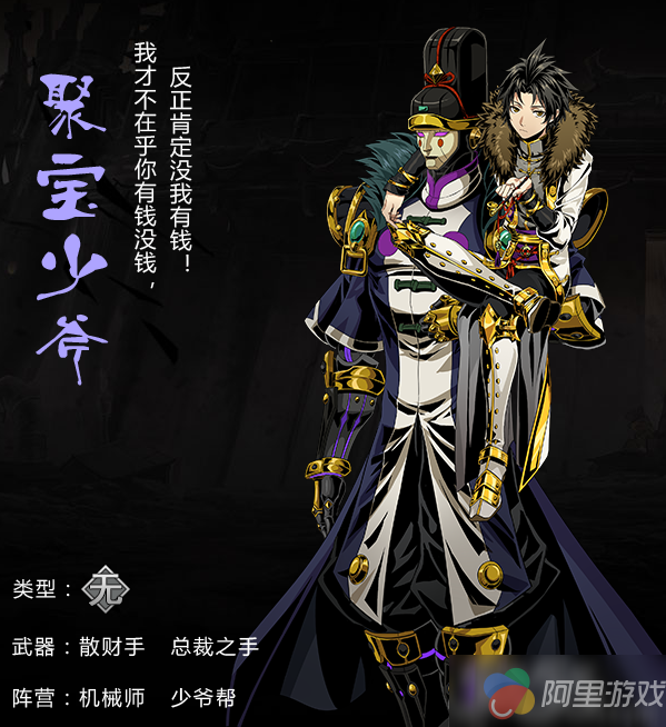 游戏中全新角色聚宝少斧桀骜亮相,作为聚宝少斧是聚宝财枭的老来子,受到格外的溺爱。也从不缺钱。喜欢他的原因是他在格斗是可以操控一个傀儡并肩作战,十分灵活。