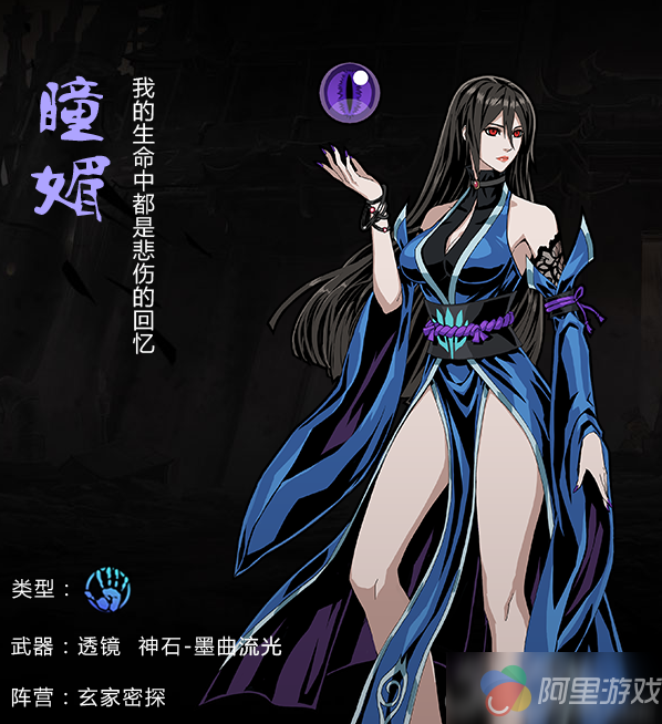 说了三位小编喜欢的男性角色,最后也给大家推荐个小姐姐——瞳媚。她手持一个紫色的眼球,可想而知她的技能也是和球相关。招牌动作如下图。