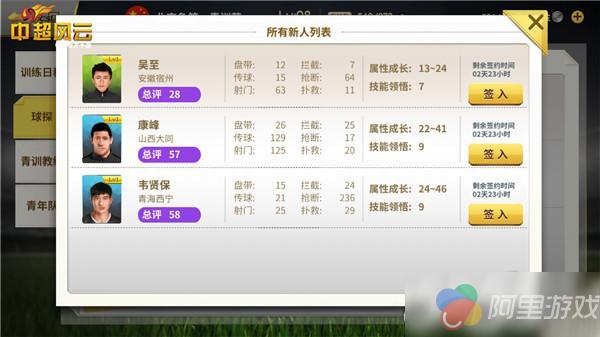 所以《中超风云》也格外重视青训教练的聘用。在游戏中,玩家每次可以聘请一位青训教练,每位教练都有属性训练、技能训练2个能力,满级5星,最低1星。玩家可根据当前青训营小球员的潜力,以及你对他们的期望,来挑选适合的青训教练。