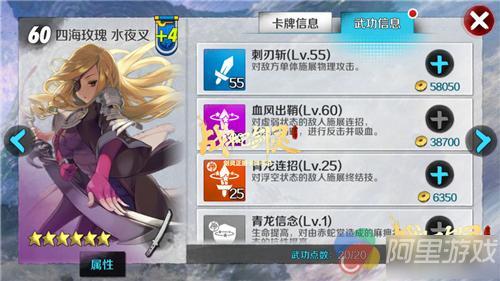 水夜叉是玩家能够较早获得的卡牌之一,她的卡牌碎片除了副本之外,还能够从任务中获得,很容易就能够升到5星,甚至是6星。而她的技能也十分强力,“刺刃斩”所需的内力仅为30,可以先手对敌人单体造成巨大伤害,核心技能“血风出鞘”能够在格挡之后进行反击并吸血,这就让水夜叉有了站在1号位的资本,可以说水夜叉是前期最容易获得,也是最好用的1号位卡牌之一。虽然她的资质是B,但是也可以作为优先升星卡牌来培养。
