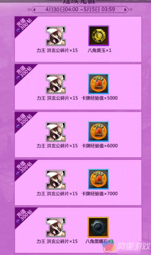 碎片的取得方式:每日充值30RMB,就将获得15个S级拳师-力王洪玄公的碎片,总计75个。其中第一次充值获得一个八角黄玉,最后一次充值获得一个八角黑曜石。总体来说玩家需要在5天时间内合计充值150RMB就可获得满额的奖励。相比于之前每天6元的消费来看,30元的消费无疑提高了很多。那么问题来了,玩家是不是值得掏出这150软妹币呢?