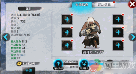 从其技能上来看力王具有以下几个技能:【猛虎拳】攻击敌方单体,使其陷入眩晕状态,并提高同排队友的闪避能力。同排队友:效果1:10秒内闪避+370。敌人单体效果1:造成119%+X伤害(升级后+11),效果2:3秒内眩晕。效果3:损失10内力。
