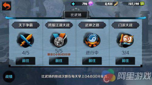 为什么把天下争霸放在最后,因为天下争霸的敌人,玩家往往要搜索一段时间才可以找到,同时,对于实力相当的对手,胜算也是对半。而其余的比武场玩法,武神之路,不难过前几关,门派大战,可以选择敌人,而跨服,直接由系统分配。