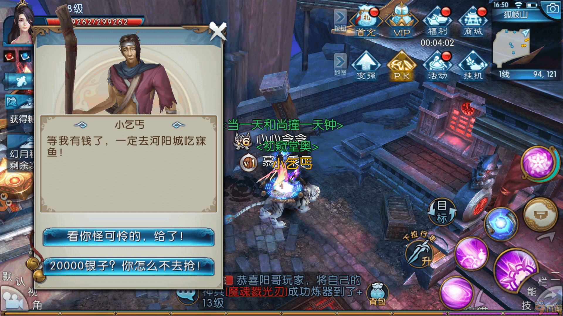 【方法】鬼王地图右上角npc白虎旁(坐标狐岐山94.121),给小乞丐2次2万银币,再继续点(一共点3次),触发任务,和小乞丐对话获得伤心花法宝和女儿红,使用女儿红获得称号。