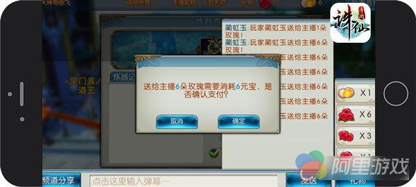 图7:《诛仙手游》直播互动 鸡蛋鲜花随便砸