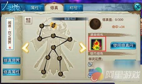 修真功能90级开启,一共200重。点击人物界面“修真”分页进入。