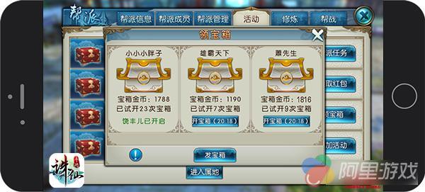 除了上述各大强交互性玩法外,《诛仙手游》还在本次资料片中为大家带来了全新的帮派宝箱玩法,每周六晚,仙友们可向帮派内发放金币宝箱,其他帮派成员可花费一定数量的金币来尝试开启宝箱,若手气绝佳成功开启,则可将宝箱内绝大部分的金币纳入囊中。此后每周六帮派之中都将不时出没意外惊喜,随时盯紧游戏,大家一起来“抢钱”,相信精彩刺激堪比抢红包,每周一抢包你收入不菲,千万不要错过噢!