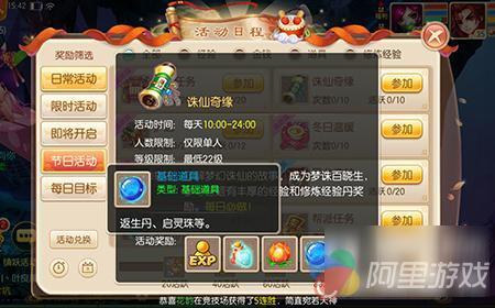 了解梦幻诛仙的故事,成为梦诛百晓生,参加答题有分后的经验和修炼经验丹奖励。每日必做!