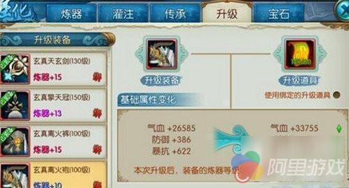 真仙装备升级后,基础属性大幅提升,炼器等级加成按新的装备等级为基础,计算炼器属性加成数值。