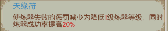 这个可以在炼器失败的时候让惩罚减少成降低一级的炼器等级,与此同时,炼器的成功率也是会提高20%的噢!
