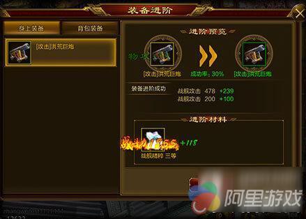 *点击战舰装备,点“更多”按钮后,选择“进阶”,可打开“战舰装备进阶”界面。