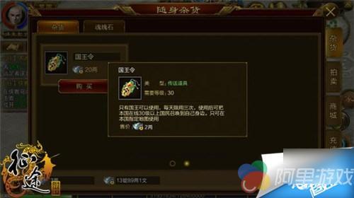 在征途手机版中,最为显著的便是激情四射的国战。谈起国战,不得不提的小道具要数国王令了!使用国王令能够快速地将本国在30级以上的国民召唤到自己的身边,但是每天限用三次,且只能由国王来使用。