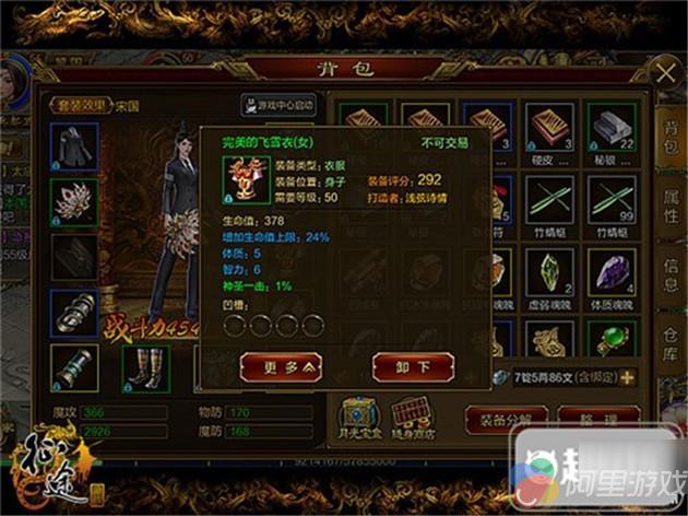 在游戏中,装备的来源有很多,侠客岛、打BOSS、开箱子,都能获取装备,但给的装备都是随机的,所以王城(285,180)或者凤凰城(122,97)寻找装备锻造师进行打造是最快速、稳定获取装备的途径,只需消耗秘银和硬皮就可以了。
