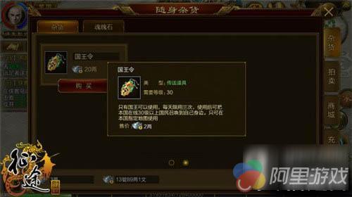 在《征途手机版》中,最为显著的便是激情四射的国战。谈起国战,不得不提的小道具要数国王令了!使用国王令能够快速地将本国再掀30级以上的国民召唤到自己的身边,但是每天限用三次,且只能由国王来使用。