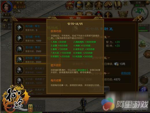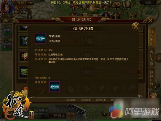 这是获取功勋的主要方法,像搬砖、运镖、刺探,这些日常任务是每天必须要做的。