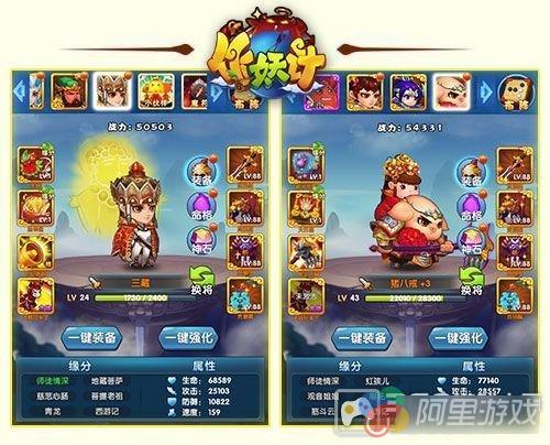 《西游记》作为中国古代第一部浪漫主义长篇神魔小说,备受关注与推崇,在游戏中,悟空、三藏、猪八戒、小白龙、四大天王、阎王、钟馗等广为人知的妖、佛大咖,以颠覆的无厘头形象再现,等待玩家召唤。